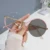 0801复古无框合金航空飞行员太阳镜渐变太阳镜女性金属椭圆形墨镜黑棕色